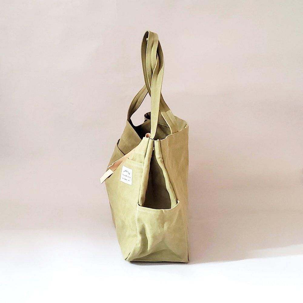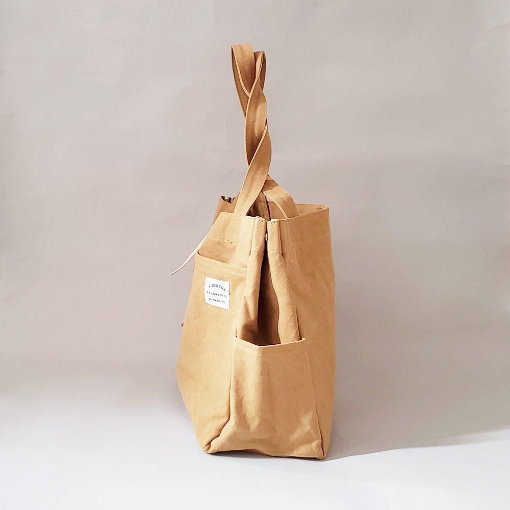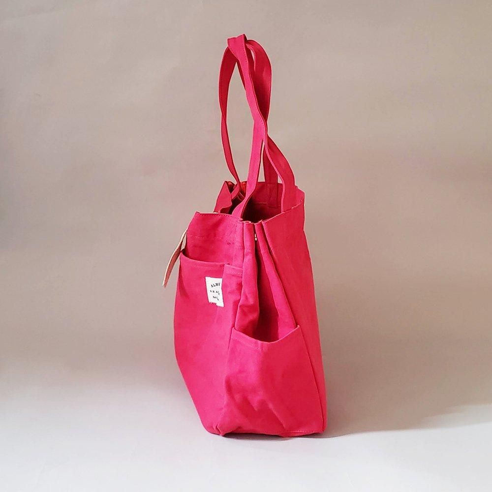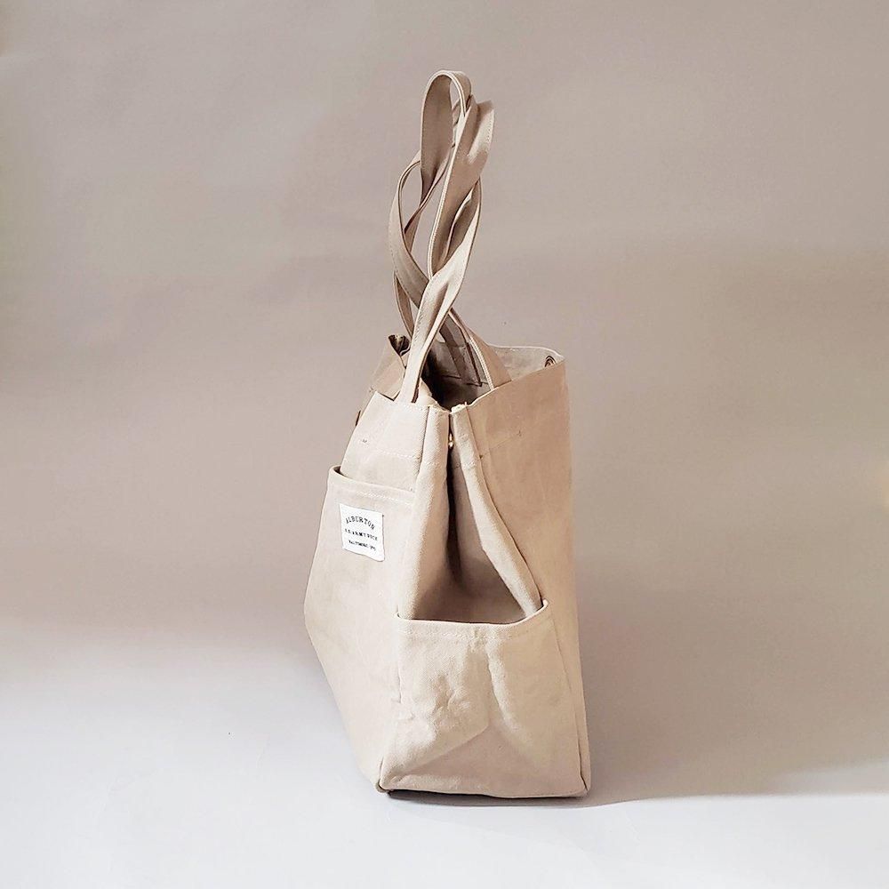 日常のスタイルに合うテアトリーノ/アルバートン帆布トートバッグ、Mサイズ。こちらはSサイズとLサイズの間のサイズが欲しいとのお声をいただき製作した新作となります。A4〜雑誌サイズがスムーズに入り、カメラやビデオ等も収納OK。