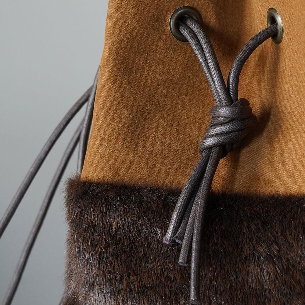 一見、キャンプなどのアウトドア向きの防火加工と思いますが、バックに仕立てると味わいに変わる、そんな楽しみ方もオーナーのこだわりです。