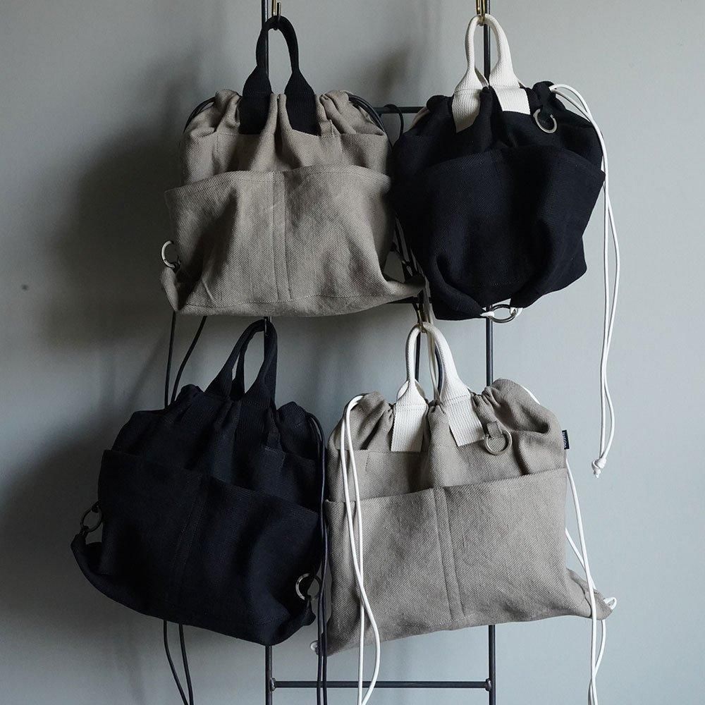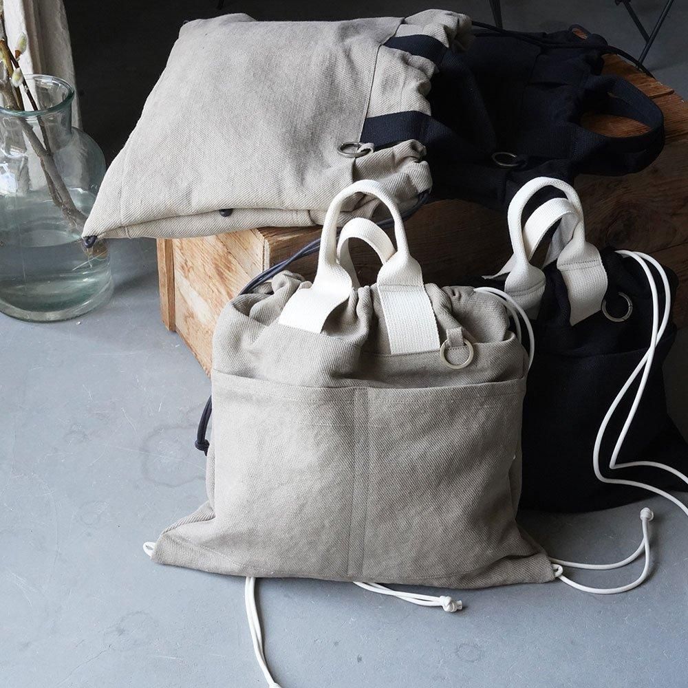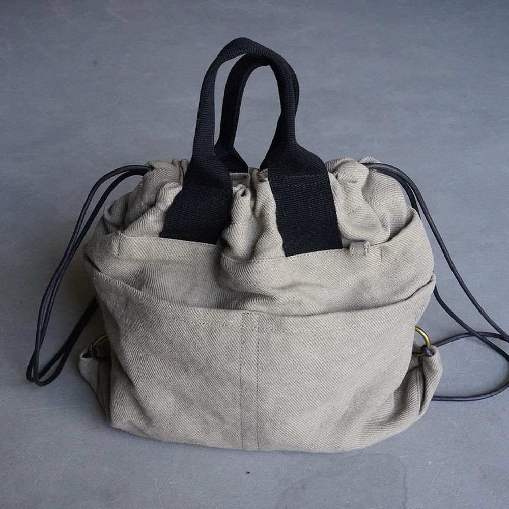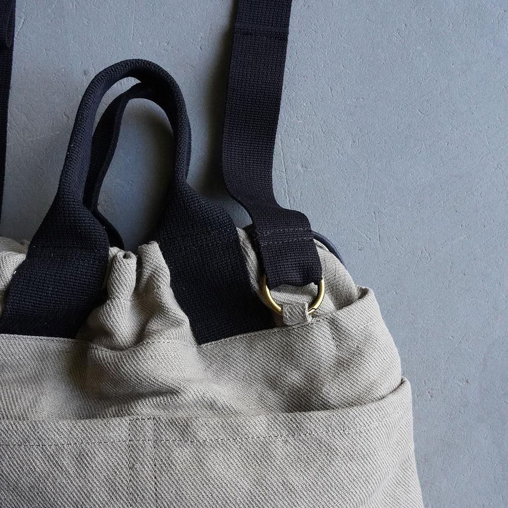 アルバートン帆布ツイルは、麻の素材を使った綾織(斜めの柄)が特徴の生地です。4通りの使い道を持つ鞄はそのときどきでお好みに仕様を変えていただけ、ビジネスシーンはもちろん普段使いにも。鞄の口元は紐で縛ることもでき中が見えない状態にできます。外ポケットが2つ内ポケットも3つと仕分けもでき、中身がバラバラになることなくご使用いただけます。